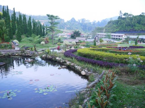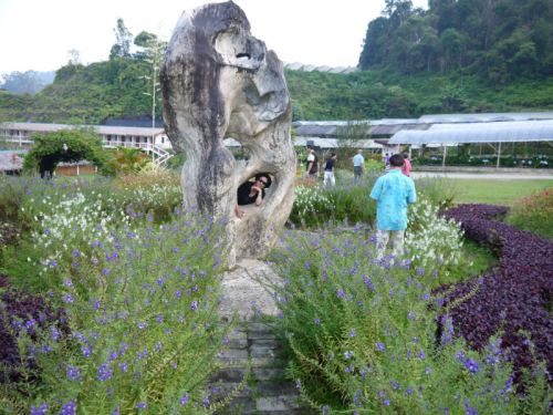 勿洞有一个类似大马的金马仑高原,它就是让人感到心旷神怡的万花园,这个地方坐落在第二友谊村,它像个百花齐放的世外桃源,度假村是小木屋,来到这里,一切烦恼全被抛在脑后。万花园有出名的野山药材“大力王”、灵芝、山马蹄,还种植大量有机蔬菜,餐餐吃得健康,是个养生的好地方;“大力王”是勿洞盛产的一种中药,据说长期冲饮,可以增加身体的抗茵能力,远离一切疾病,这种中药可轻易的在勿洞街道各角落购买。万花园长年温度介于13度至30度